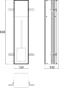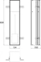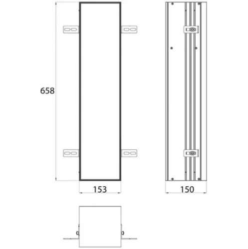 - Höhe 658 mm, Breite 154 mm, Tiefe 150 mm