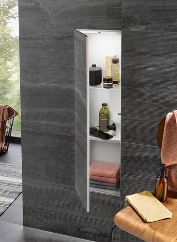 emco asis module plus, WC-Modul-Unterputzmodell, Glasablage, Metallablage, Steckdose, Türkontaktschalter und LED-Beleuchtung, wechselbarer Türanschlag (links/rechts)