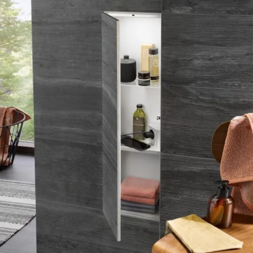emco asis module plus, WC-Modul Unterputzmodell, mit einer Glasablage, einer Metallablage, Steckdose, Türkontaktschalter und LED-Beleuchtung, Türanschlag links/rechts wechelbar