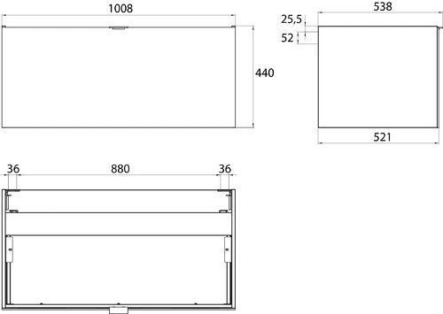 emco evo 1000 Waschtischunterschrank, 1008x440x522mm, Auszug mit Glasfront