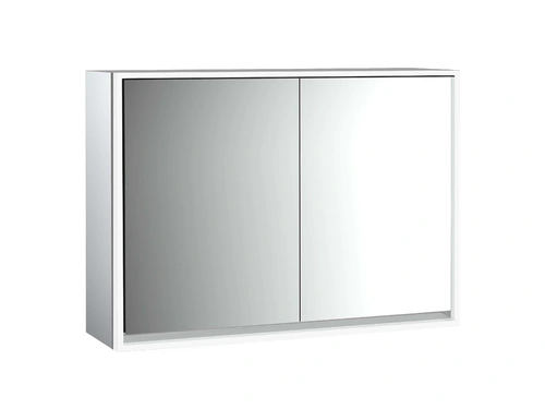emco loft Lichtspiegelschrank, 1000mm, 2 Türen, Aufputzmodell, aluminium/weiß