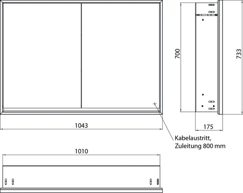 - Maße (BxTxH): 1043 x 175 x 733 mm