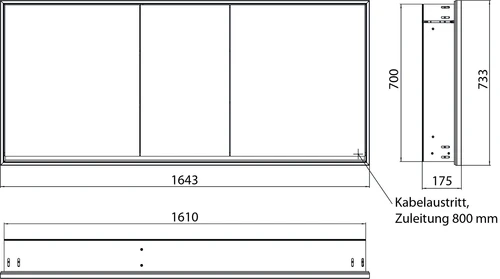 - Maße (BxTxH): 1643 x 175 x 733 mm