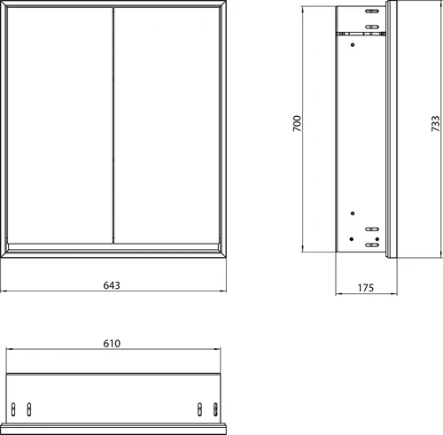 - Maße (BxTxH): 643 x 175 x 733 mm