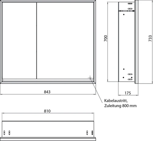 - Maße (BxTxH): 843 x 175 x 733 mm