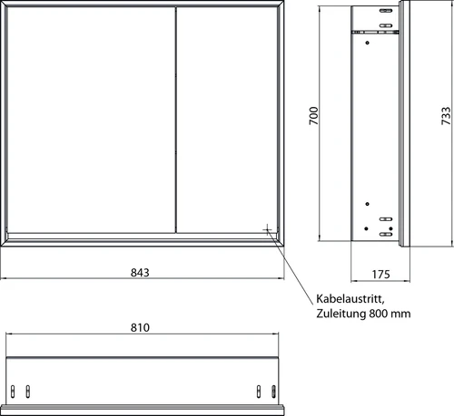 - Maße (BxTxH): 843 x 175 x 733 mm
