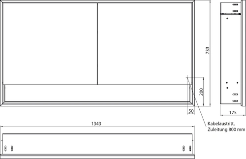 - Maße (BxTxH): 1343 x 175 x 733 mm