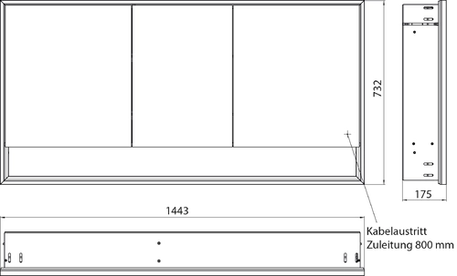 - Maße (BxTxH): 1443 x 175 x 733 mm