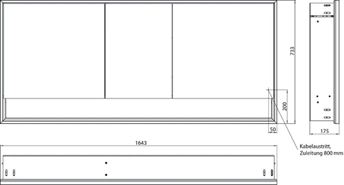 - Maße (BxTxH): 1643 x 175 x 733 mm