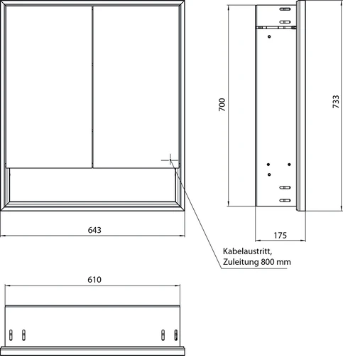 - Maße (BxTxH): 643 x 175 x 733 mm