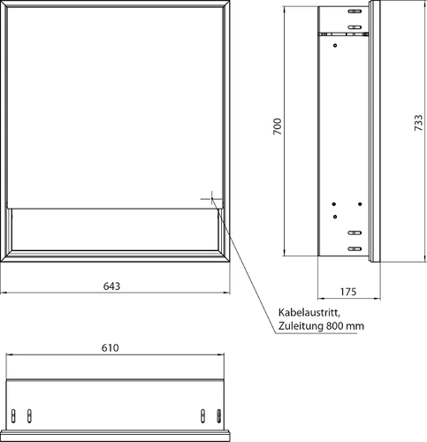- Maße (BxTxH): 643 x 175 x 733 mm