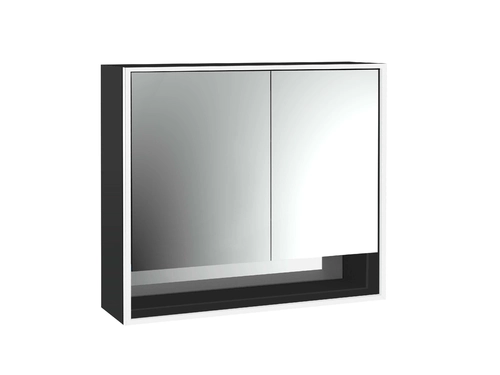 emco loft Lichtspiegelschrank mit Unterfach, 800mm, 2 Türen, Aufputzmodell, schwarz/spiegel