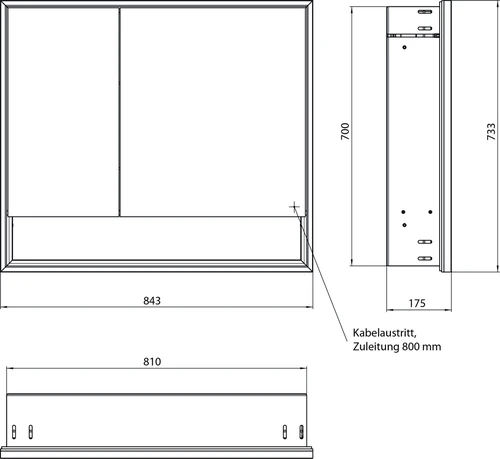 - Maße (BxTxH): 843 x 175 x 733 mm