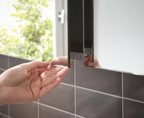 emco mee LED-Lichtspiegelschrank, aluminium, 2 Türen, Aufputzmodell, LED-Leuchte, 1200mm