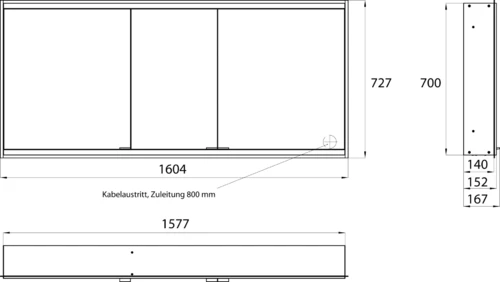 - 1 x Lichtspiegelschrank prime, 1600 mm, Unterputzmodell, IP20