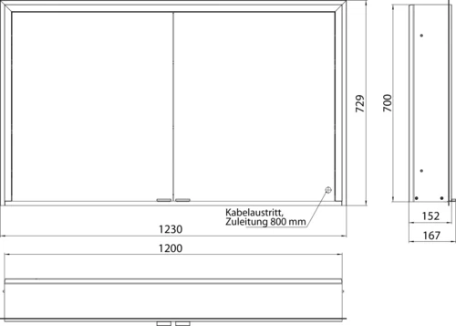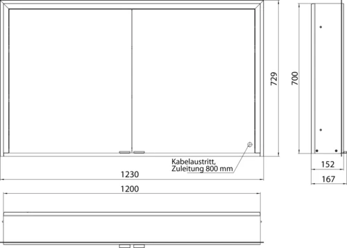 - Maße (BxTxH): 1230 x 167 x 729 mm