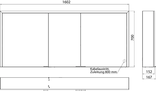 - Maße (BxTxH): 1602 x 167 x 700 mm