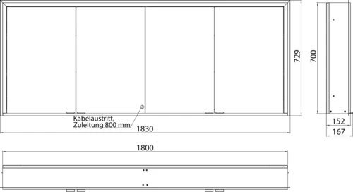 - Maße (BxTxH): 1830 x 167 x 729 mm
