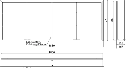 - Maße (BxTxH): 1830 x 167 x 729 mm
