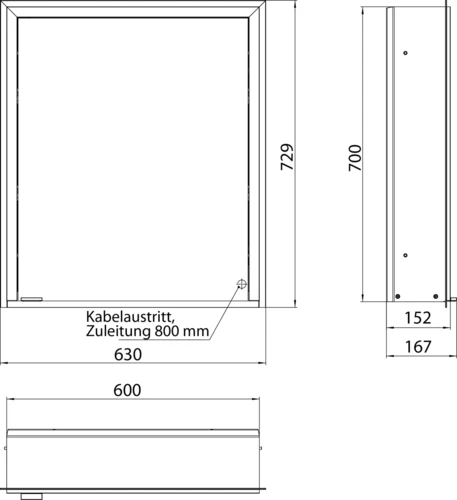 - Maße (BxTxH): 630 x 167 x 729 mm