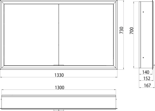 - 1 x Lichtspiegelschrank prime, 1300 mm, Unterputzmodell, IP20