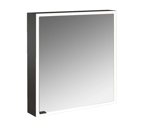emco prime Lichtspiegelschrank, 600 mm, eine Tür, Anschlag rechts, mit verspiegelten Seitenwänden, Aufputzmodell