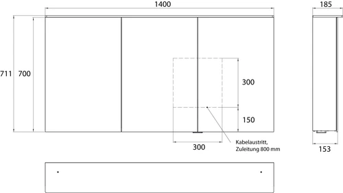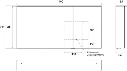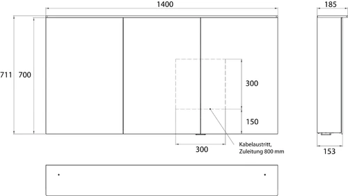 emco pure 2 Design LED verlichte spiegelkast met lichtzeil, 3 deuren, 1400x711x153mm