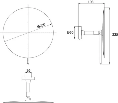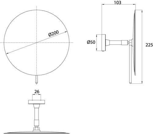 - 1-armig, 3-fach, rund, Durchmesser 200mm