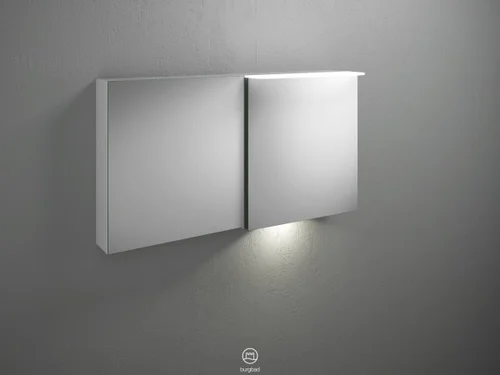 burgbad Badu mirror cabinet with LED top light, 2 doors, left-hand version, with LED washbasin lighting, width 1200mm