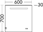 burgbad Eqio light mirror with LED lighting, 1 sensor switch, mobile phone holder, 600x30x700mm