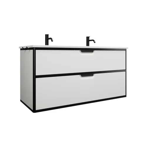 burgbad Vry ceramic double washbasin with vanity unit, 1230x600x496mm