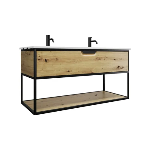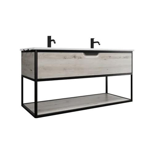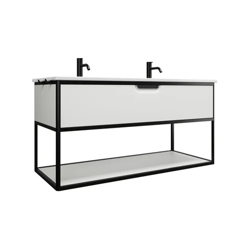 burgbad Vry ceramic washbasin with vanity unit, 2 tap holes, open compartment, 1230x600x496mm