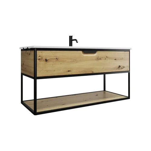 burgbad Vry ceramic washbasin with vanity unit, open compartment, 1230x600x496mm