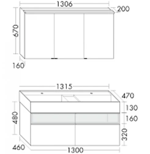 burgbad Yumo set ceramic washbasin incl. vanity unit, incl. mirror cabinet, width: 1315mm, version left