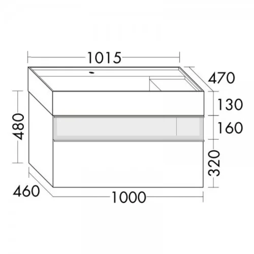 - 1 drawer Aluminium frame front incl. smoked glass insert at top with siphon cut-out