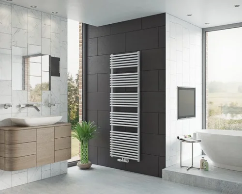 Corpotherma Ponera bath heater, water-carried, straight precision steel tubes, depth: 52mm, white