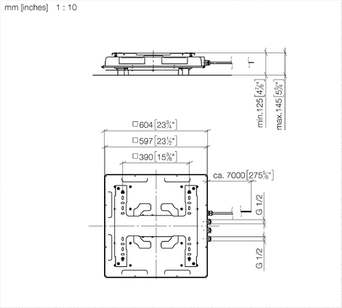 - Recessed ceiling housing 605 x 605 x 95 mm