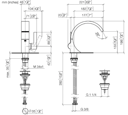 Dornbracht CYO single-lever basin mixer with drain set, projection 177mm