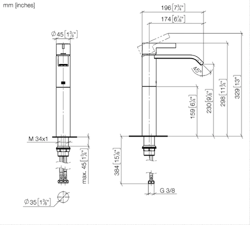 Dornbracht IMO single-lever washbasin mixer with raised pedestal, without drain set, 170mm projection