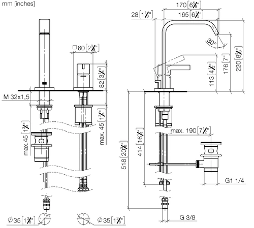 Dornbracht IMO two-hole washbasin mixer, with drain set, 165mm projection