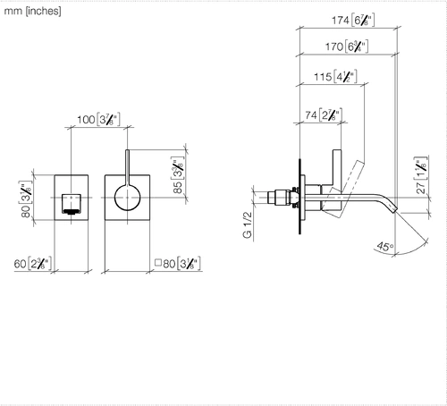 - 1 x wall-mounted single-lever basin mixer
