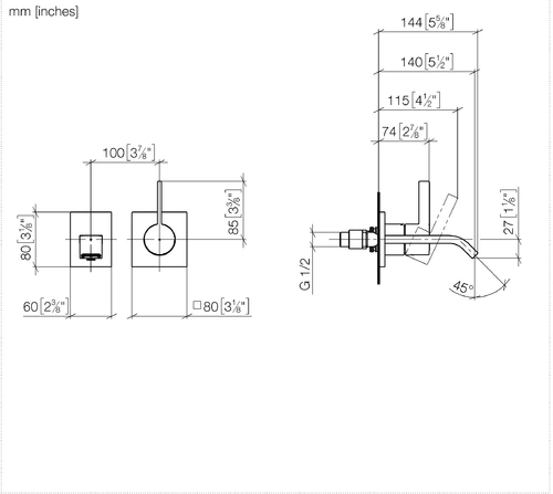 - 1 x wall-mounted single-lever washbasin mixer