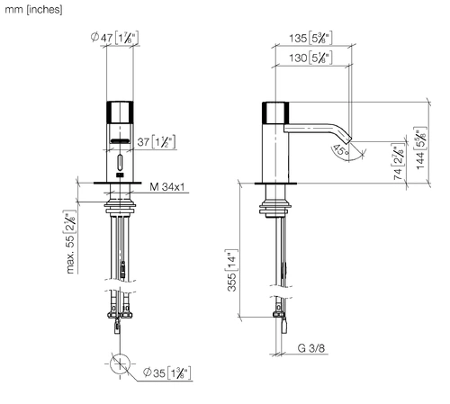 - Tap height: 135 mm