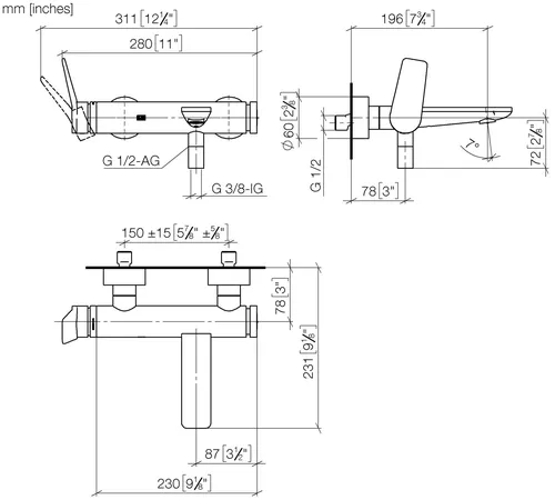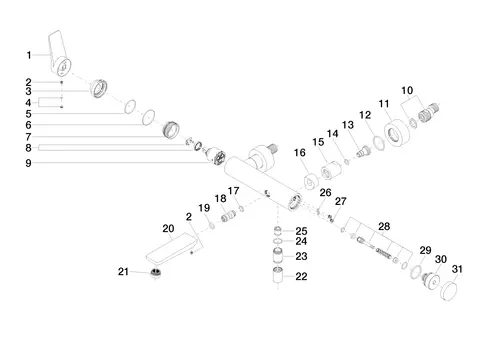 - 1 x single-lever bath mixer for wall mounting without mixer set