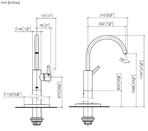 - Height to water outlet 1098 mm