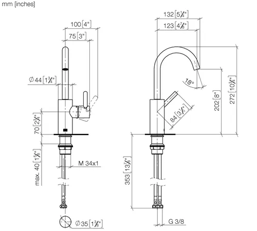 - Tap height 272 mm