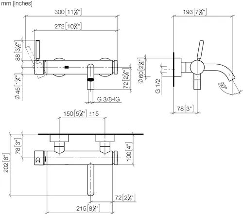 Dornbracht META single-lever bath mixer without mixer set, for wall mounting, projection 202mm