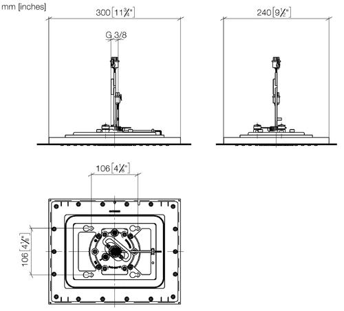 Dornbracht rain shower for recessed ceiling installation, with LED lighting, 300x240mm