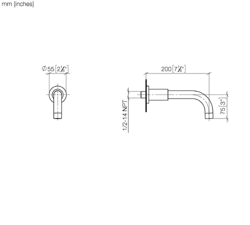 Dornbracht TARA bath spout for wall mounting, projection 200mm
