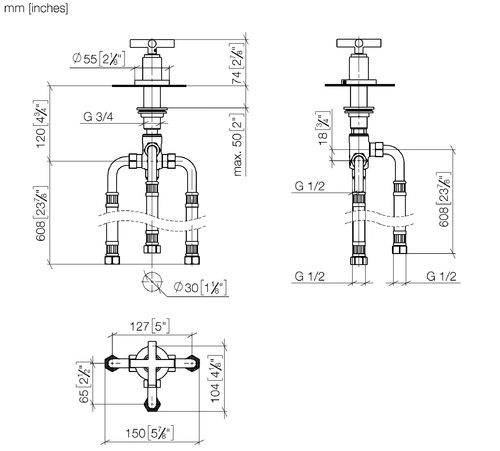 Dornbracht TARA two-way diverter for bath rim or tile rim installation, automatic bath/shower diverter